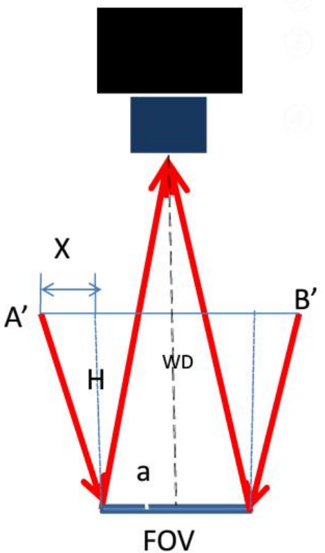 ② 當(dāng)H=WD/2時,要得到均勻光照,需要光源外徑A'B'為1.5FOV
