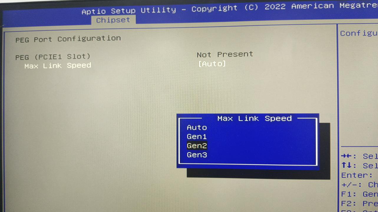 6.回車鍵進入“Max Link Speed”選項里,選擇“Gen2”,并按回車鍵