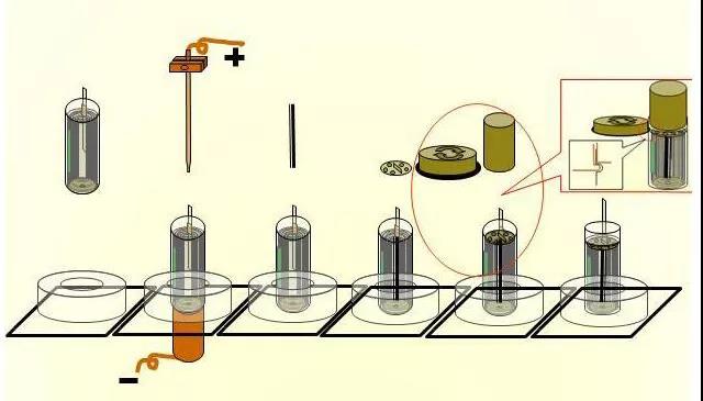 組裝后的電池,被給予一定的電流,使電池正負(fù)極活性物質(zhì)被激發(fā),最后使電池具有放電能力的電化學(xué)過程稱為化成,電池只有經(jīng)過化成后才能作為電源使用。