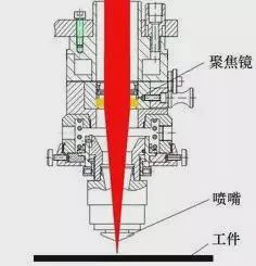 實際上,在切割過程中,噴嘴與工件之間的距離(噴嘴高度)約0.5~1.5mm,不妨看作是一個固定值,即噴嘴高度不變,所以不能通過升降切割頭來調(diào)焦(否則無法完成切割加工)。