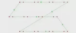 早期的激光切割機(jī)的空程如下圖所示,切割頭要次第完成三個動作:上升(到足夠安全的高度)、平動(到達(dá)點B的上方)、下降。