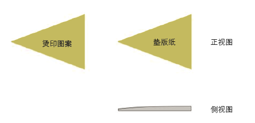 在此,還要探討一種特殊的面接觸燙印工藝,即燙壓工藝。所謂燙壓工藝,就是將燙印和壓凹凸工藝合二為一的一種燙印技術(shù)(如圖3所示)。