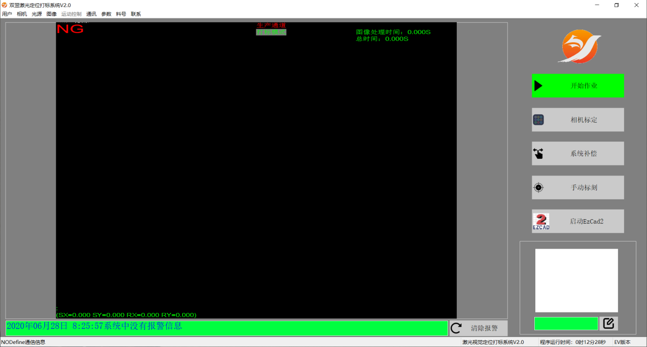 5. 驗(yàn)證標(biāo)配結(jié)果,驗(yàn)證標(biāo)定準(zhǔn)確性的方法:標(biāo)定完成后,右鍵選擇“激光標(biāo)刻”,系統(tǒng)將在鼠標(biāo)指針?biāo)傅奈恢?,?biāo)刻一次導(dǎo)入的圖形。即所謂的“指哪打哪”,說(shuō)明標(biāo)定數(shù)據(jù)正確,激光坐標(biāo)和相機(jī)像素坐標(biāo)已經(jīng)統(tǒng)一。