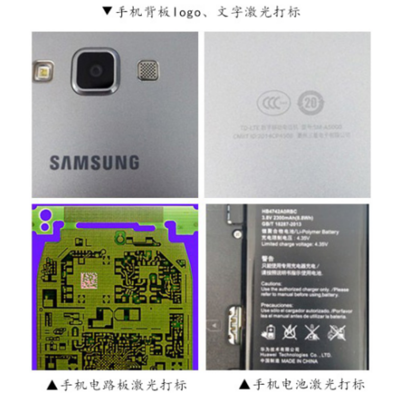 激光打標(biāo):手機(jī)Logo、手機(jī)按鍵、手機(jī)外殼、手機(jī)電池激光打標(biāo)等等,甚至在你看不見的手機(jī)內(nèi)部,也有零部件激光打標(biāo)。
