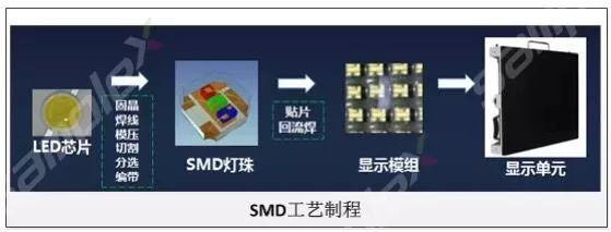 主要工藝流程是將LED發(fā)光芯片封裝于支架內(nèi)形成燈珠(SMD表貼件),燈珠通過焊錫再貼于PCB板。再將表貼件及PCB板放入高溫烤箱內(nèi)進(jìn)行燒結(jié)凝固(回流焊),然后通過壓焊技術(shù)對(duì)LED進(jìn)行引線焊接,*后用環(huán)氧樹脂對(duì)支架進(jìn)行點(diǎn)膠封裝,*終形成顯示模組,模組再拼接成單元。