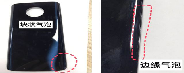 OCA涂布膠量少、曲面玻璃弧度太高、脫泡設備氣壓、溫度、時間參數(shù)設定有誤