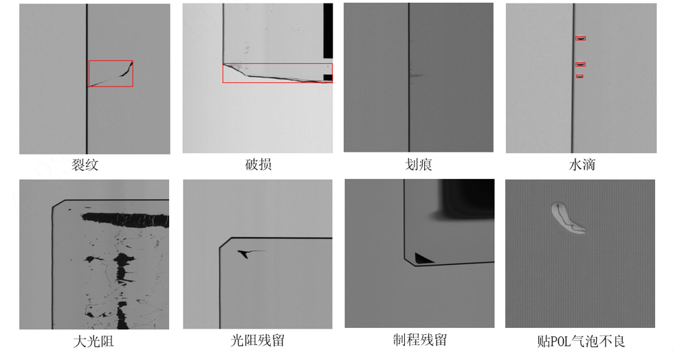 對(duì)于檢測(cè)問(wèn)題,現(xiàn)有的目標(biāo)檢測(cè)算法有很多,可以實(shí)現(xiàn)較高精度和實(shí)時(shí)性的檢測(cè),有效對(duì)液晶面板瑕疵進(jìn)行識(shí)別和分類(lèi)——實(shí)現(xiàn)針對(duì)崩邊、裂紋、臟污、水滴、劃痕等缺陷檢測(cè),并與主生產(chǎn)設(shè)備對(duì)接,檢測(cè)到缺陷后根據(jù)缺陷的類(lèi)型自動(dòng)做出反饋判斷:停機(jī)或報(bào)警,現(xiàn)場(chǎng)無(wú)需工作人員實(shí)時(shí)監(jiān)控。