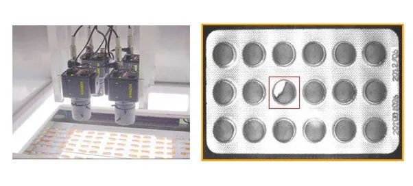 通過(guò)機(jī)器視覺(jué)可以檢測(cè)藥片在包裝時(shí)可能產(chǎn)生的藥片缺損、蚊蟲(chóng)污染、漏裝、膠囊漏粉等不良情況進(jìn)行檢測(cè)。