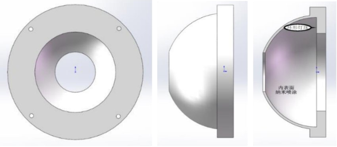 成像所使用的光源是一種用于均勻照明的穹頂光源。對于彎曲和不平表面,可以通過光源的大張角進行成像,對于檢測球型或曲面物體。由于穹頂光源的內(nèi)壁可以通過反射將反射光分散,消除弧形表面存在大部分的不均勻反光。穹頂光源特點:1)發(fā)出的光通過半球型內(nèi)壁的反射形成散射照明光,實現(xiàn)對弧形金屬表面實現(xiàn)均勻的照明;2)穹頂光源覆蓋全波長范圍,主要應(yīng)用于弧形表面缺陷檢測或不平坦表面檢測。