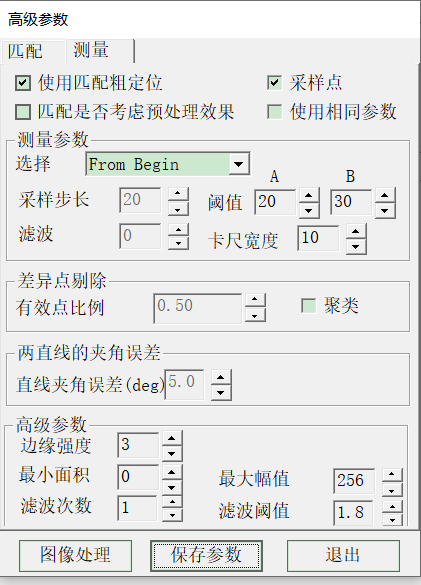 卡尺工具的寬度,例如卡尺寬度是10代表會在是個像素點的寬度范圍內(nèi)取到一個有效點。默認值為10