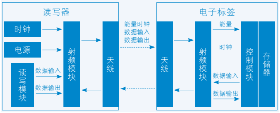 RFID 電子標(biāo)簽主要包含閱讀器、感應(yīng)器、芯片、天線、應(yīng)用系統(tǒng)等,如圖所示。RFID 的工作原理是通過 RF 信號(hào)和空間耦合傳輸特性對(duì)物體進(jìn)行識(shí)別,在它的組成結(jié)構(gòu)中,起到接受和發(fā)射信號(hào)作用的是天線,因此,天線的研究發(fā)展對(duì) RFID標(biāo)簽的發(fā)展有著重大影響。