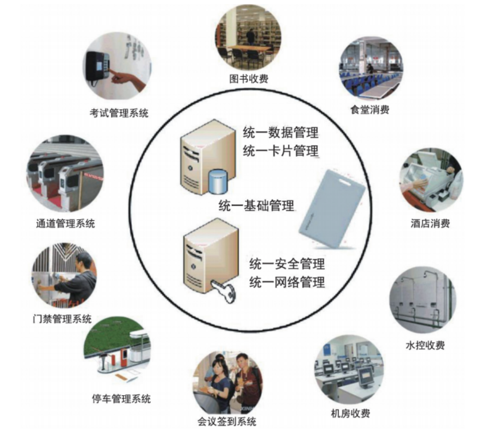 NFC 電子標(biāo)簽技術(shù)是在 RFID 電子標(biāo)簽的基礎(chǔ)上結(jié)合了互聯(lián)互通技術(shù)的一種短距離的高頻無(wú)線通訊技術(shù)。與 RFID 一樣,NFC 信息也是通過頻譜中無(wú)線頻率部分的電磁感應(yīng)耦合方式傳輸,NFC 是在設(shè)備之間進(jìn)行非接觸式點(diǎn)對(duì)點(diǎn)數(shù)據(jù)傳輸以進(jìn)行數(shù)據(jù)交換,它與藍(lán)牙的功能十分相似,都屬于短距離通信技術(shù),且都集成到移動(dòng)電話中,但 NFC 沒有復(fù)雜的程序設(shè)置,是藍(lán)牙的簡(jiǎn)化版。相對(duì)于 RFID,NFC 具有距離近、能耗低等特點(diǎn),是一種安全、迅速的無(wú)線連接方式,其應(yīng)用如圖所示。