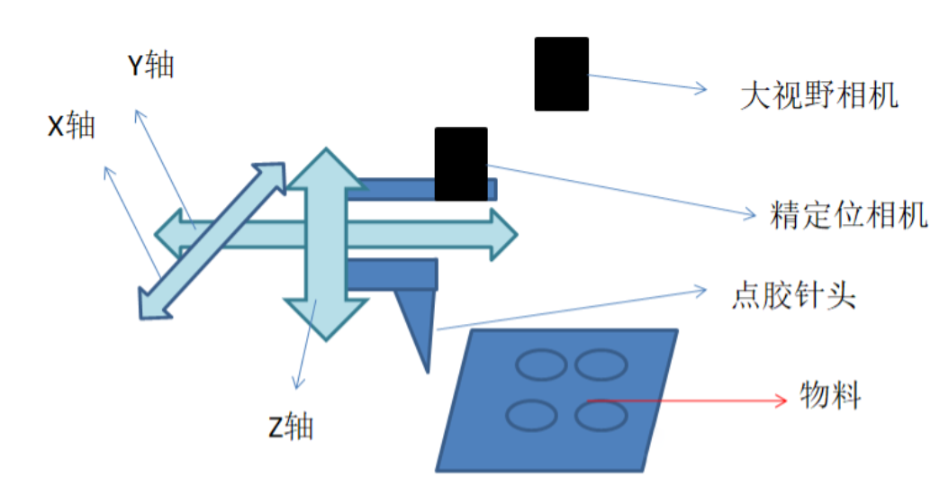 在點膠控制系統(tǒng)中引入圖像,主要目的是為了定位工件,增加設(shè)備的柔性,減少甚至無需夾具的使用,少了系統(tǒng)中加入圖像進行點膠后效果檢測。