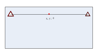 糾偏方法:如上圖所示,以雙相機錯開對位為例,糾偏方法同四Mark映射對位。以兩個Mark連線的角度作為θ,兩Mark的中間點坐標作為(x,y);同樣道理,三相機錯開對位糾偏方法同六Mark映射對位;四相機錯開對位映射方法同8相機映射對位。