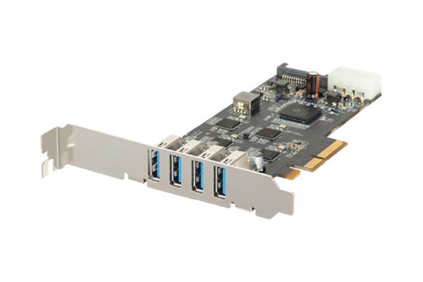 具有 4 個(gè) USB3.0 type-A 接口,適用于 PCIE x4 卡槽,支持超速傳輸模式,向下兼容 USB2.0,USB1.1 模式,USB3.0 模式下,最高傳輸速率可達(dá) 5Gbps。